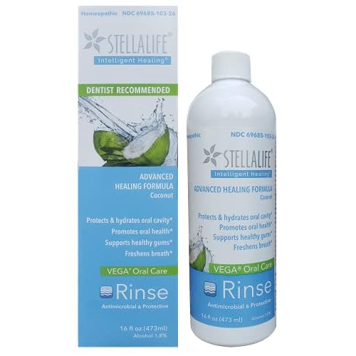 StellaLife Vega Oral Rinse: Dry Mouth Mouthwash, Natural Daily Dental Hygiene for Healthy Gums, Fresh Breath, Coconut, Sugar Free, Propolis, Xylitol, Advanced Healing After Dental Procedures