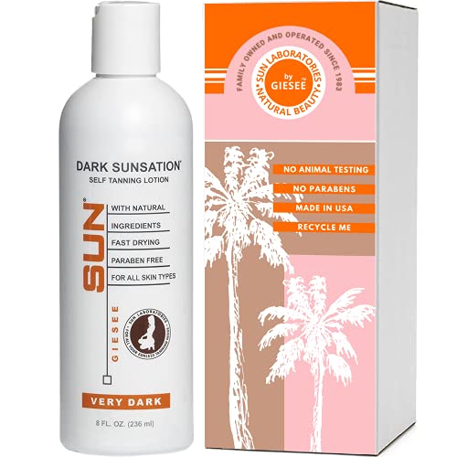 Sun Laboratories Dark Sunsation Self-Tanning Lotion for Body and Face – Sunless Tan Golden Glow – Very Dark – 8 fl oz Bottle