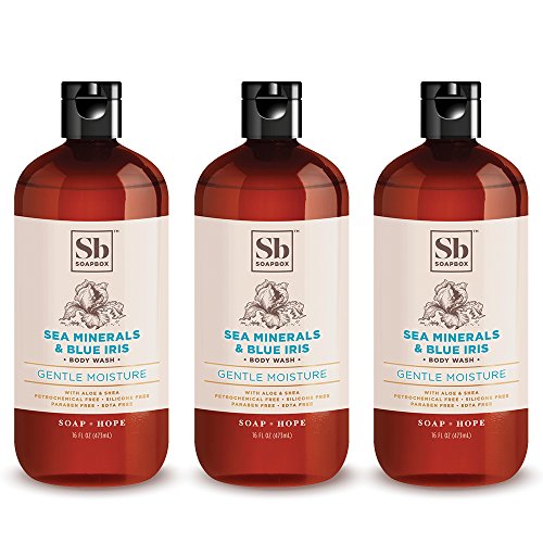 Soapbox Body Wash, Sea Minerals & Blue Iris – Moisturizing Body Wash Cleanser w/ Aloe Vera & Shea Butter | Paraben Free, Gluten Free, Silicone Free, Cruelty Free & Vegan Body Wash, 16oz Bottles (Pack of 3)