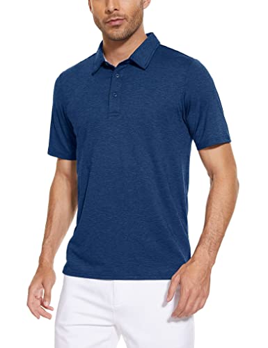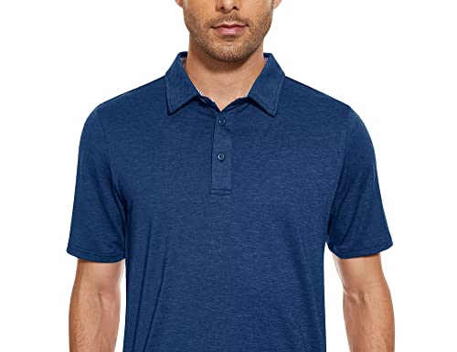 MAGCOMSEN Men’s Quick Dry Polo Shirt – Athletic Workout, Fishing, Camping, Golf – Dark Blue