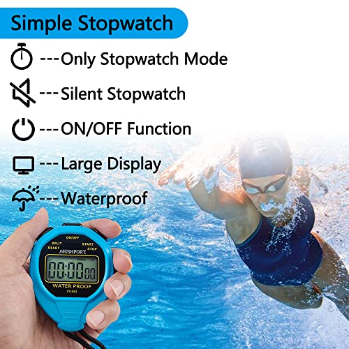 Waterproof Stopwatch Timer Only Stopwatch with ON/Off, No Clock No Date Silent Basic Operation Children Friendly, MUSHPORT Digital Stopwatch for Swimming Coaches Kids Sports Practice