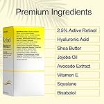 【Not synthetic— natural at all】:Face cream with retinol contains 2.5% active retinol, and is matched with effective ingredients such as vitamin E, squalane, tocopherol acetate, and avocado extract. Gentle enough will not cause breakout, redness, acne, and itching! Safe for all skin types for sensitive skin.
