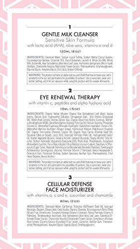 Excellent Reward with Three Important Pores and skin Care Parts Each Girl Will Love and Want for Stunning and Wholesome Pores and skin. 1. Milk Cleanser for Delicate Pores and skin 2. Antioxidant Mobile Protection Face Moisturizer with Nutritional vitamins A, C, E and Chamomile 3. Eye Renewal Remedy with Peptides. The right reward in a really Particular Reward Field only for the particular girl in your life.